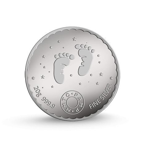 Welcome life’s most precious moment with the MMTC PAMP 20 gms New Born Silver Coin, beautifully crafted in 999.9 fine silver. This charming coin celebrates the joy of a newborn, featuring an adorable design symbolizing innocence, blessings, and new beginnings.