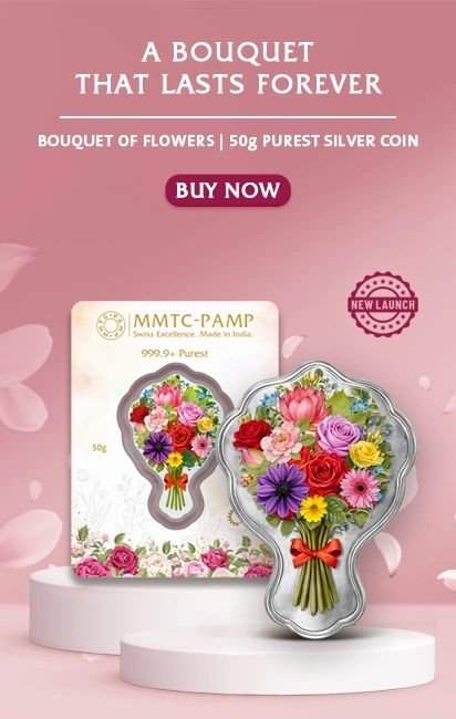 MMTC PAMP Bouquet of Flowers – 50 gms 999.9 Pure Silver Coin